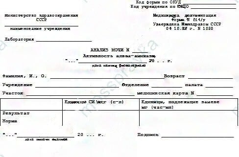 Результаты анализа на активность альфа-амилазы оформляются справкой по форме 214/у. Медицинская справка 214/у может потребоваться: