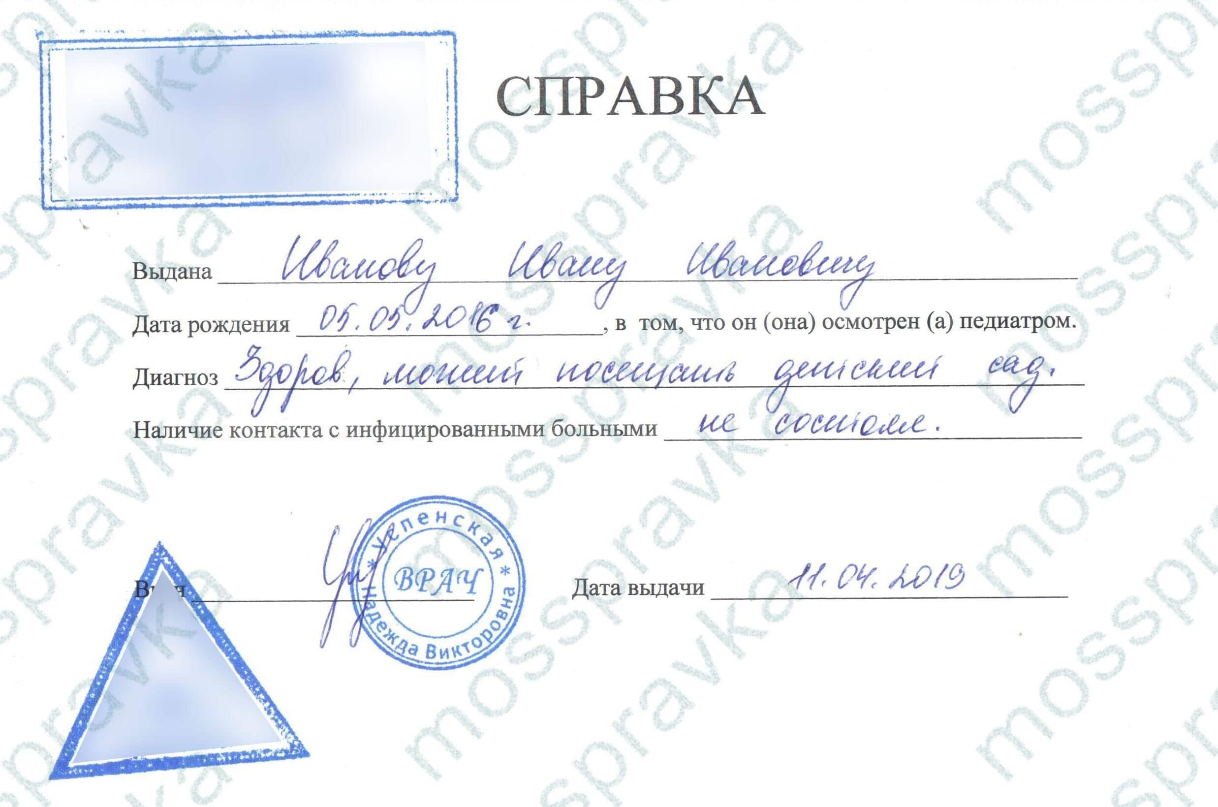 Обычно справку об отсутствии контактов с инфекционными больными выдают участковые терапевты государственных поликлиник по месту жительства. Также ее могут выдавать врачи инфекционных отделений. Получить ее для детей можно у педиатра в детской поликлинике, к которой прикреплен ребенок.