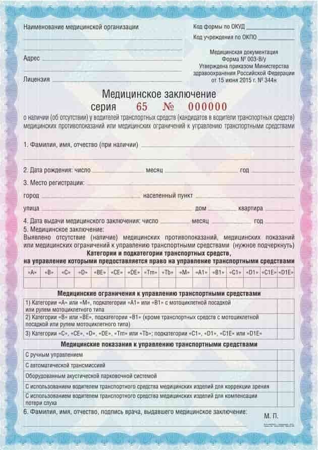Оформление медицинского документа для получения водительского удостоверения